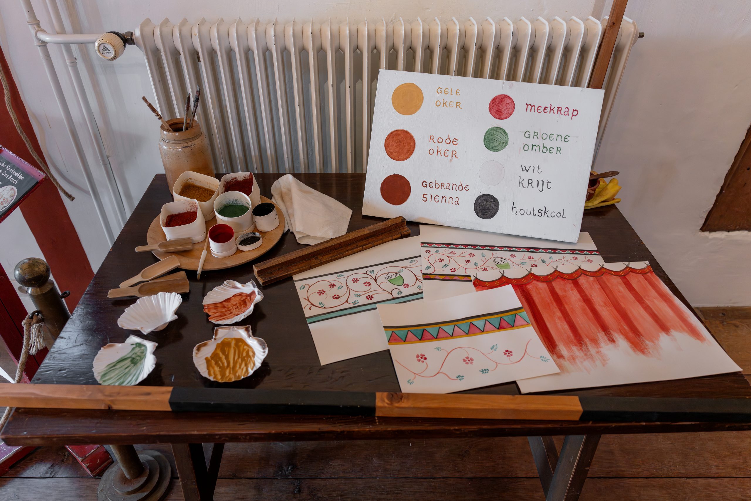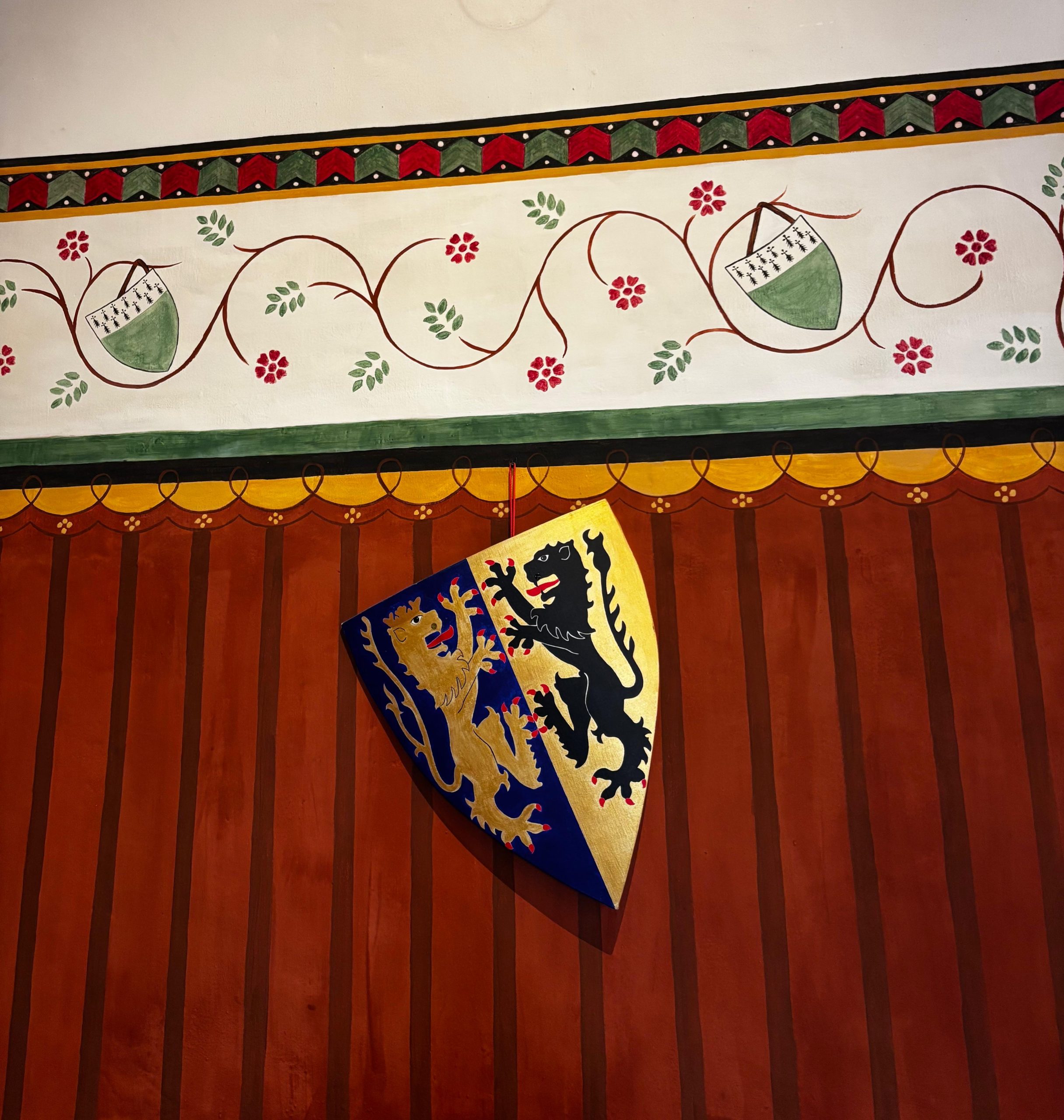 Hoe zag een zaal er in de 15e eeuw echt uit? Voor deze muurschildering werken de makers met originele voorbeelden, historische materialen en authentieke schildertechnieken. Zo ontstaat een zo nauwkeurig mogelijk beeld van het verleden — een vorm van ‘levende geschiedenis’.